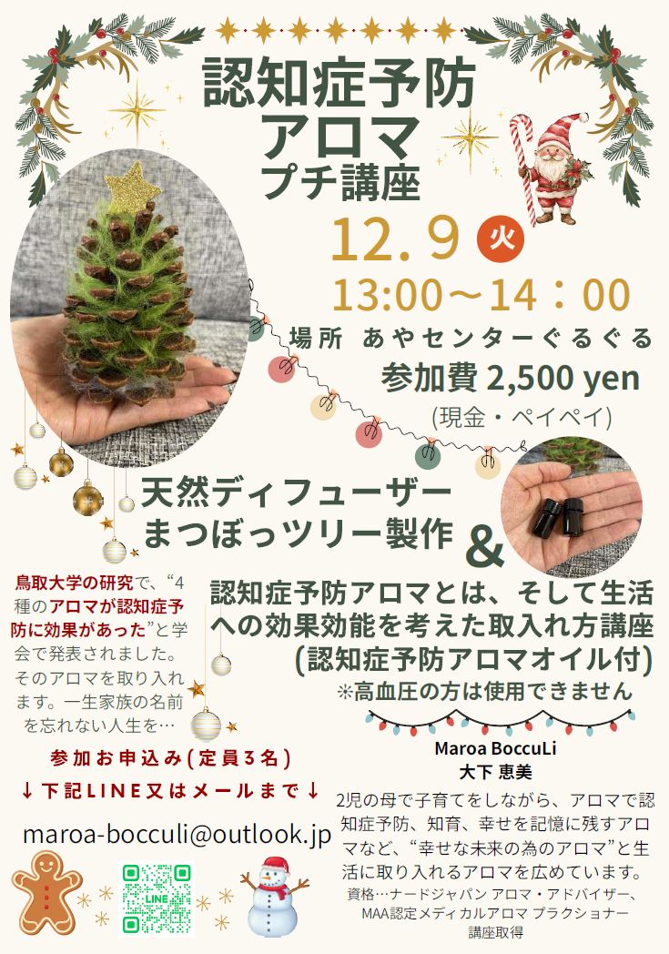 【12/9開催】認知症予防アロマプチ講座・まつぼっツリー製作とアロマセットのお土産