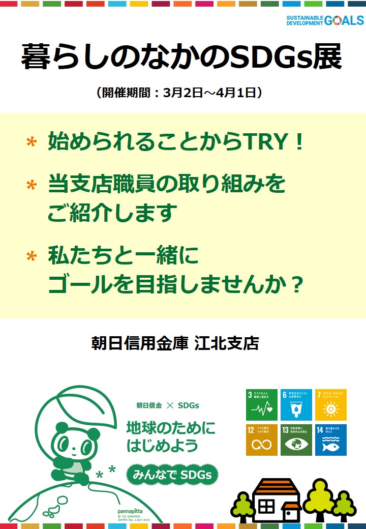 【朝日信用金庫】江北支店で「暮らしのなかのSDGs展」を開催